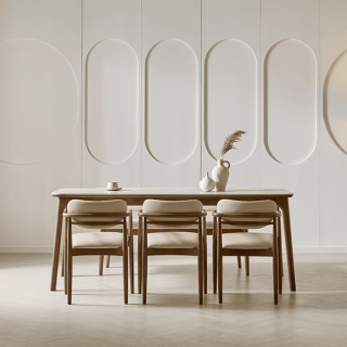 [헨지디자인] 베르나 6인 세라믹 식탁 SET 테이블+의자3+벤치의자 []